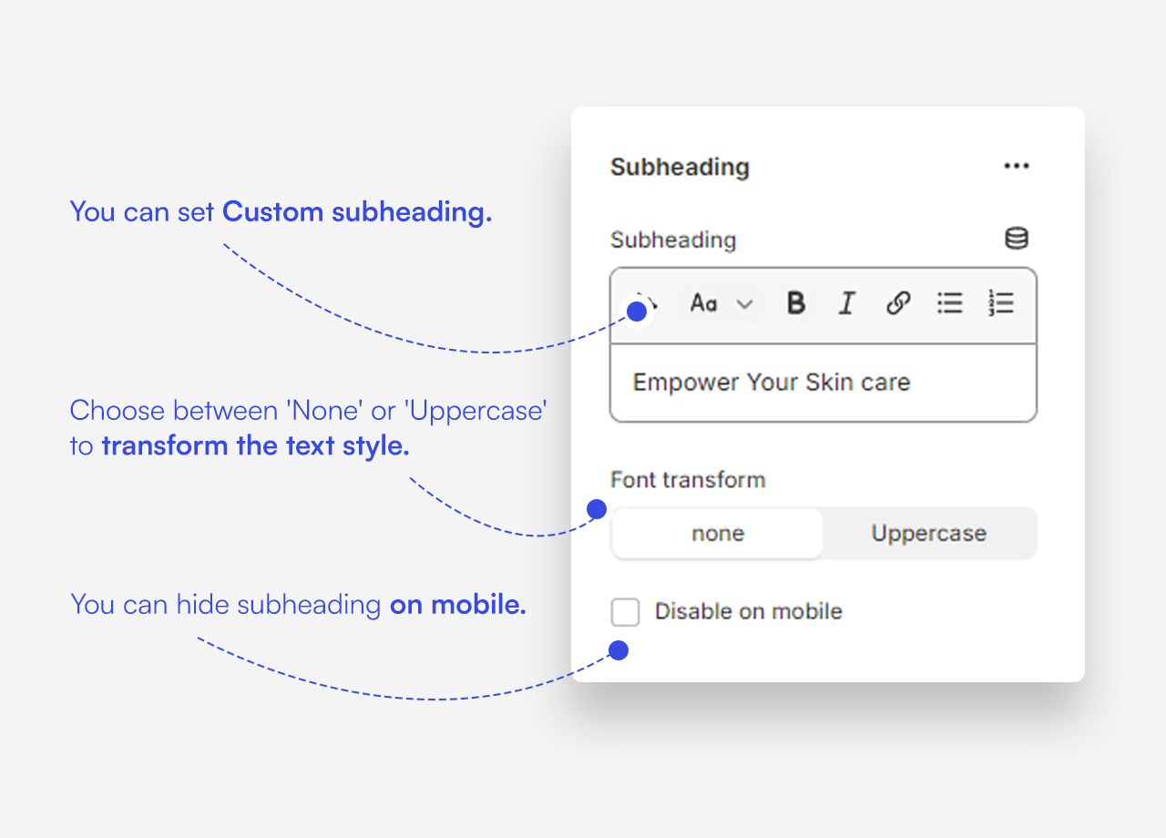 Customize subheading block