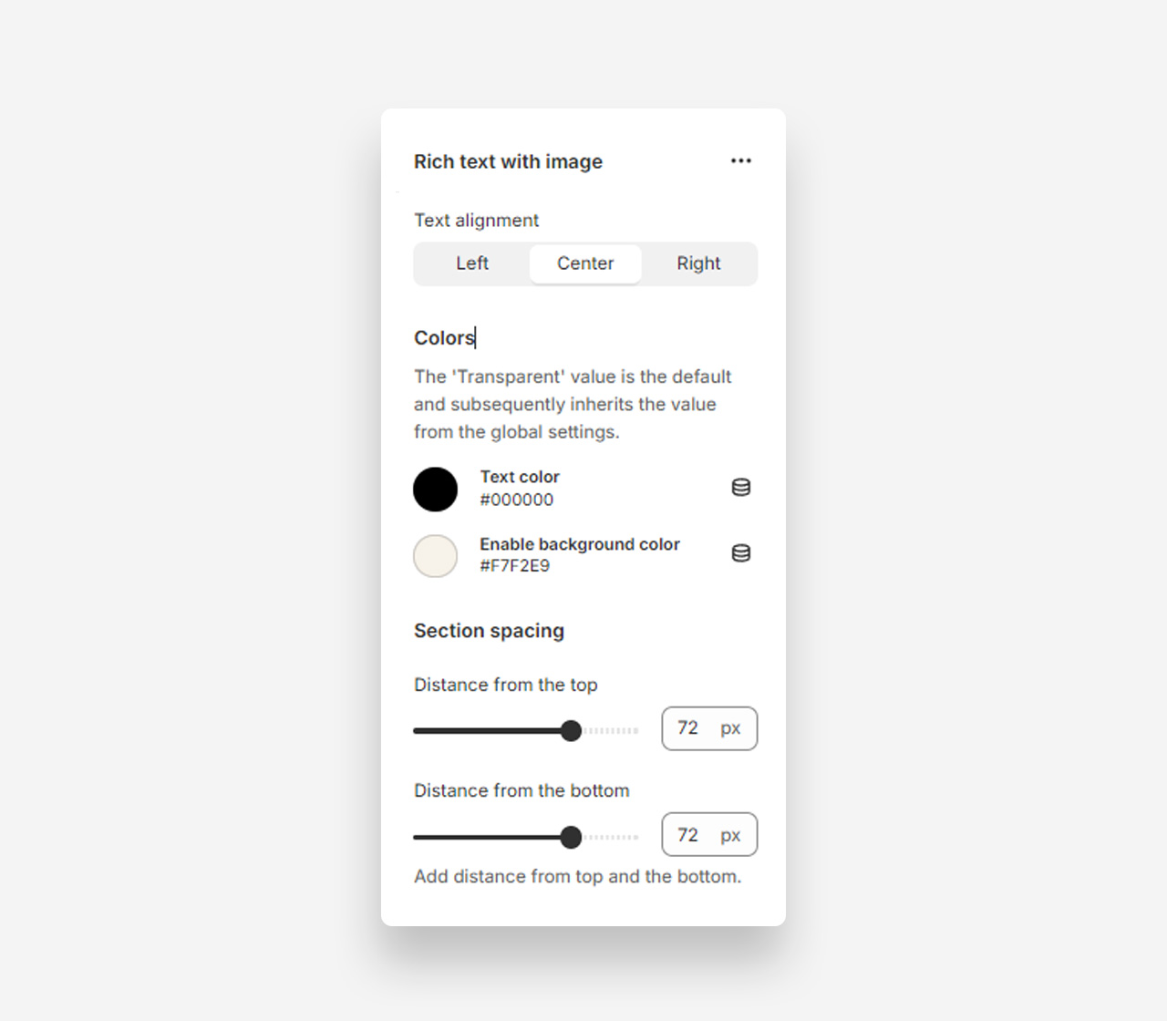 - Text color: The 'Transparent' value is the default and subsequently inherits the value from the global settings.