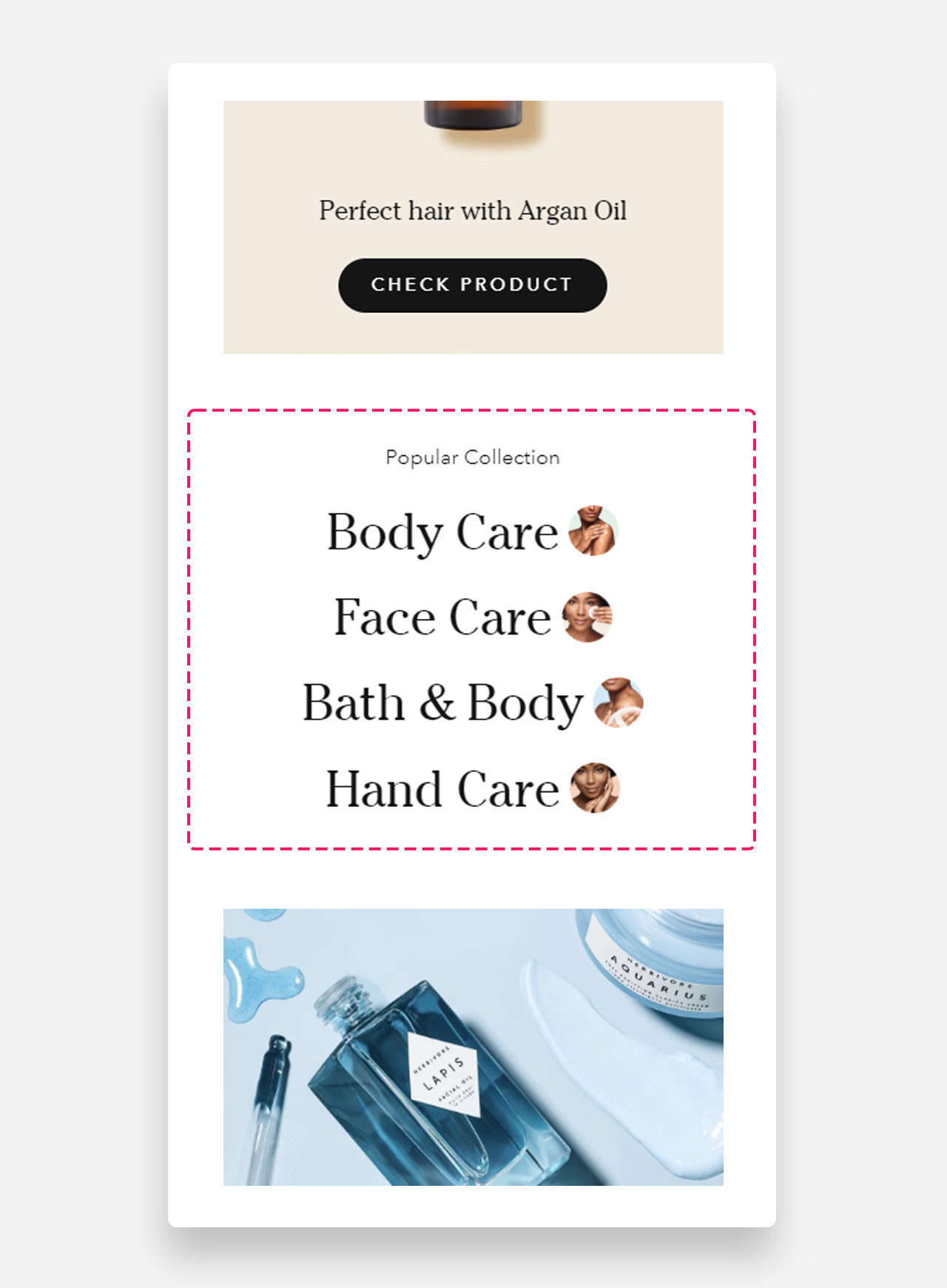 The 'Collection Feature' section transforms your store into a vibrant display of your favorite collections. With this interactive tool, you can handpick several collections to showcase, each with its own customizable color scheme and unique background. But that's not all – as customers hover over each collection, they're greeted with an eye-catching image that not only captivates but also invites exploration. This intuitive design ensures every collection stands out, offering a personalized browsing experience that guides your customers from visual intrigue to product discovery with ease.