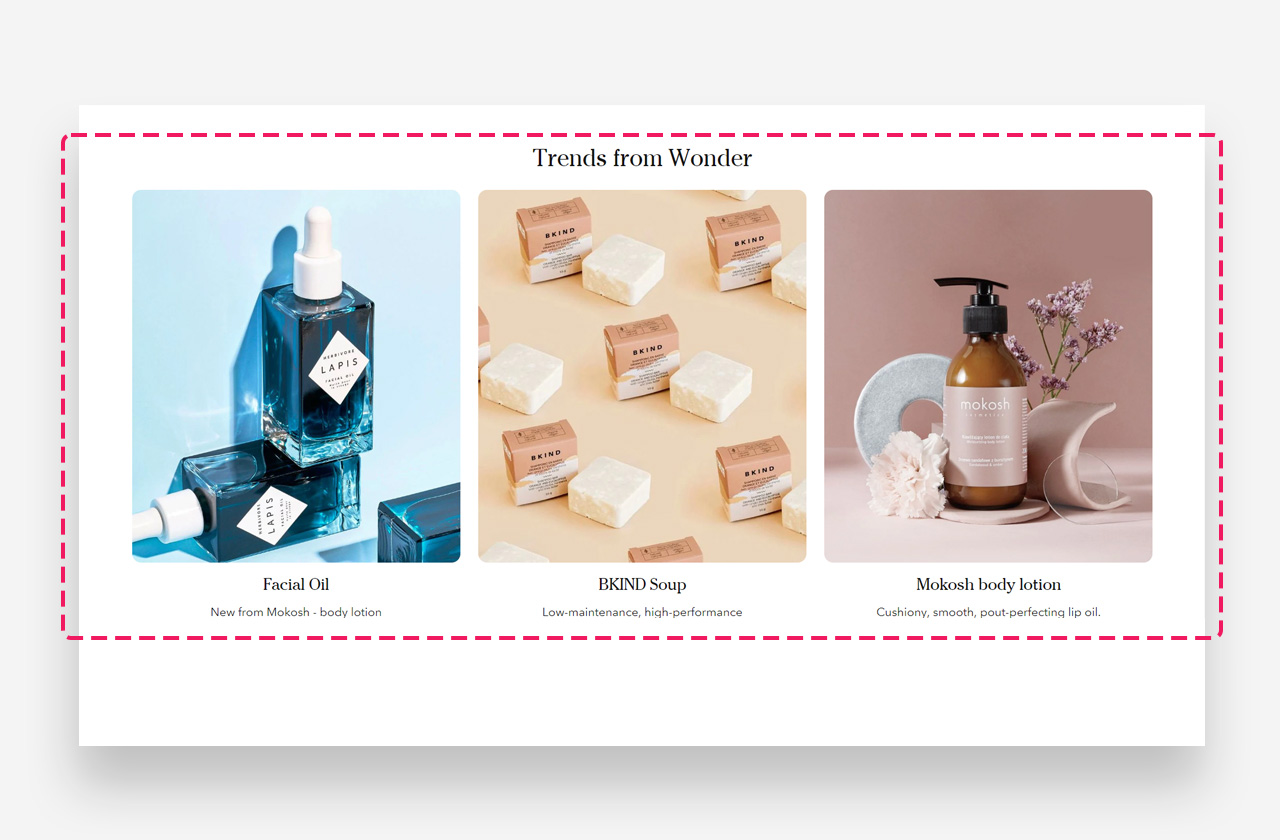- Text: Input text that complements the image and provides context, such as details on a product, collection, or story.