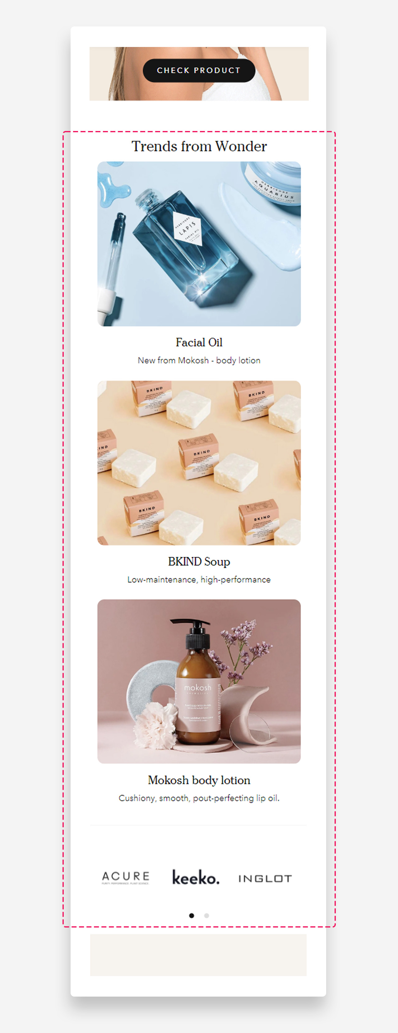 - Button: Add a button with customizable text, linking to a relevant page or product to encourage customer interaction.