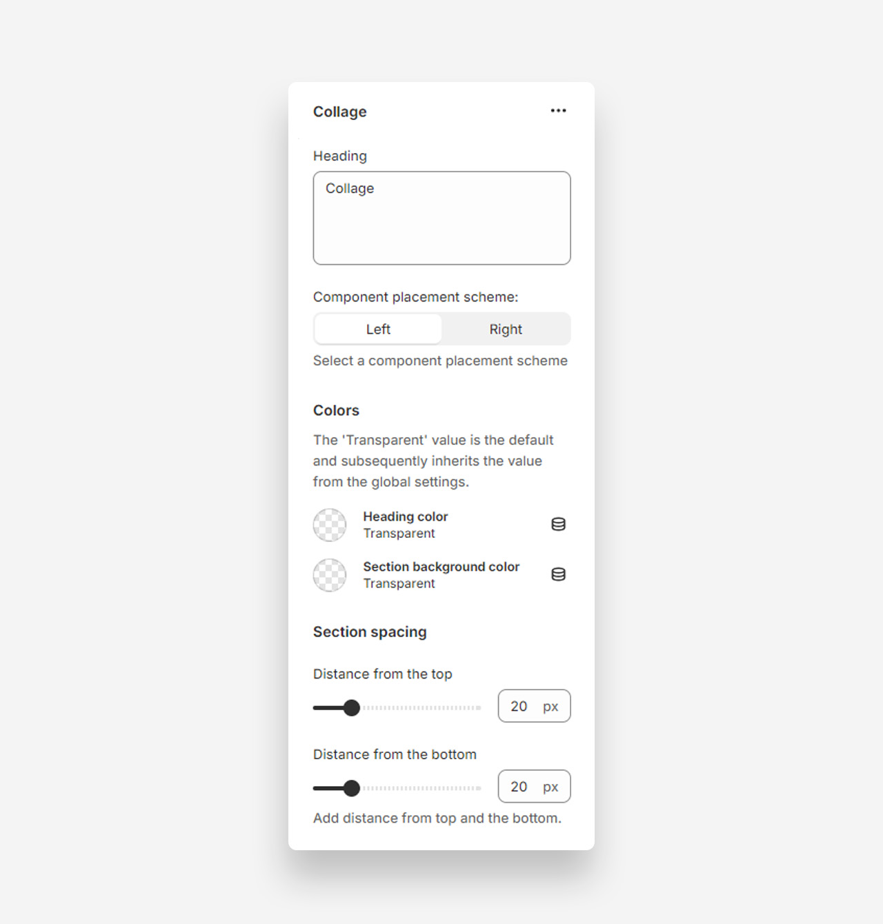 - Heading: Set the title for the Collage section.