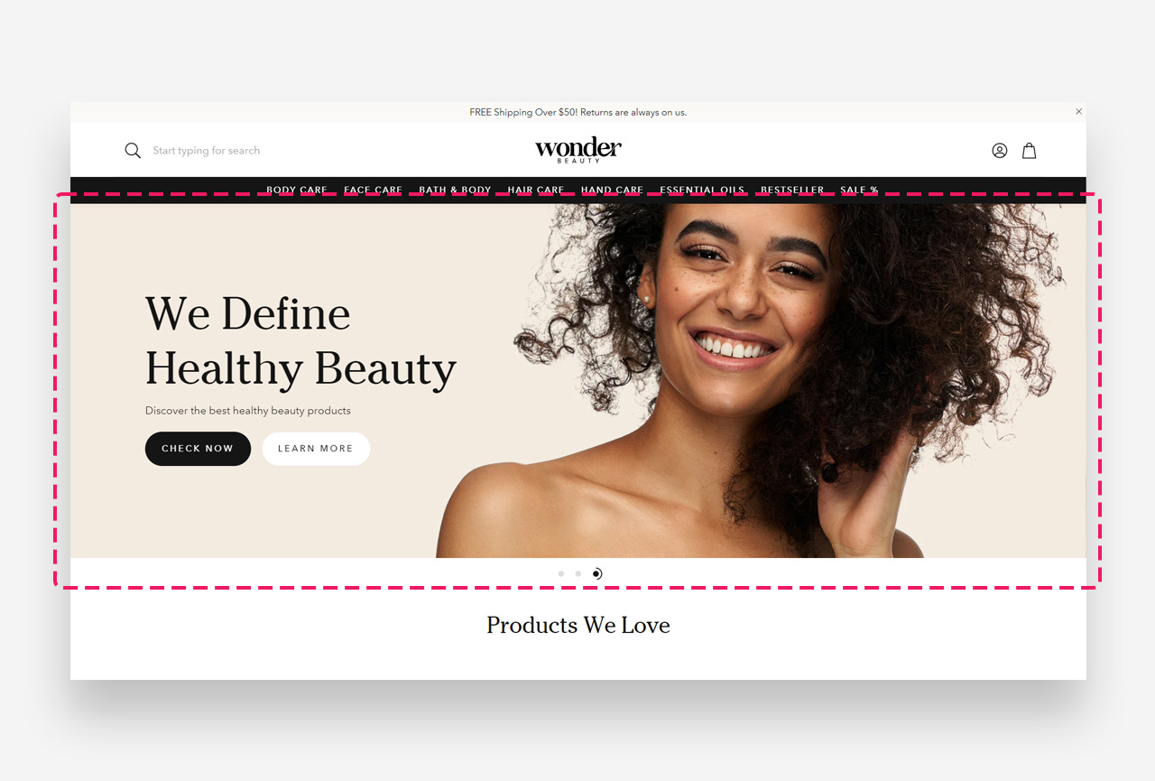 The "Slideshow" section is a dynamic display feature for your Shopify store, designed to highlight multiple images, promotions, or stories in a rotating carousel. This visually engaging element can effectively capture customer attention and guide them to different parts of your store.