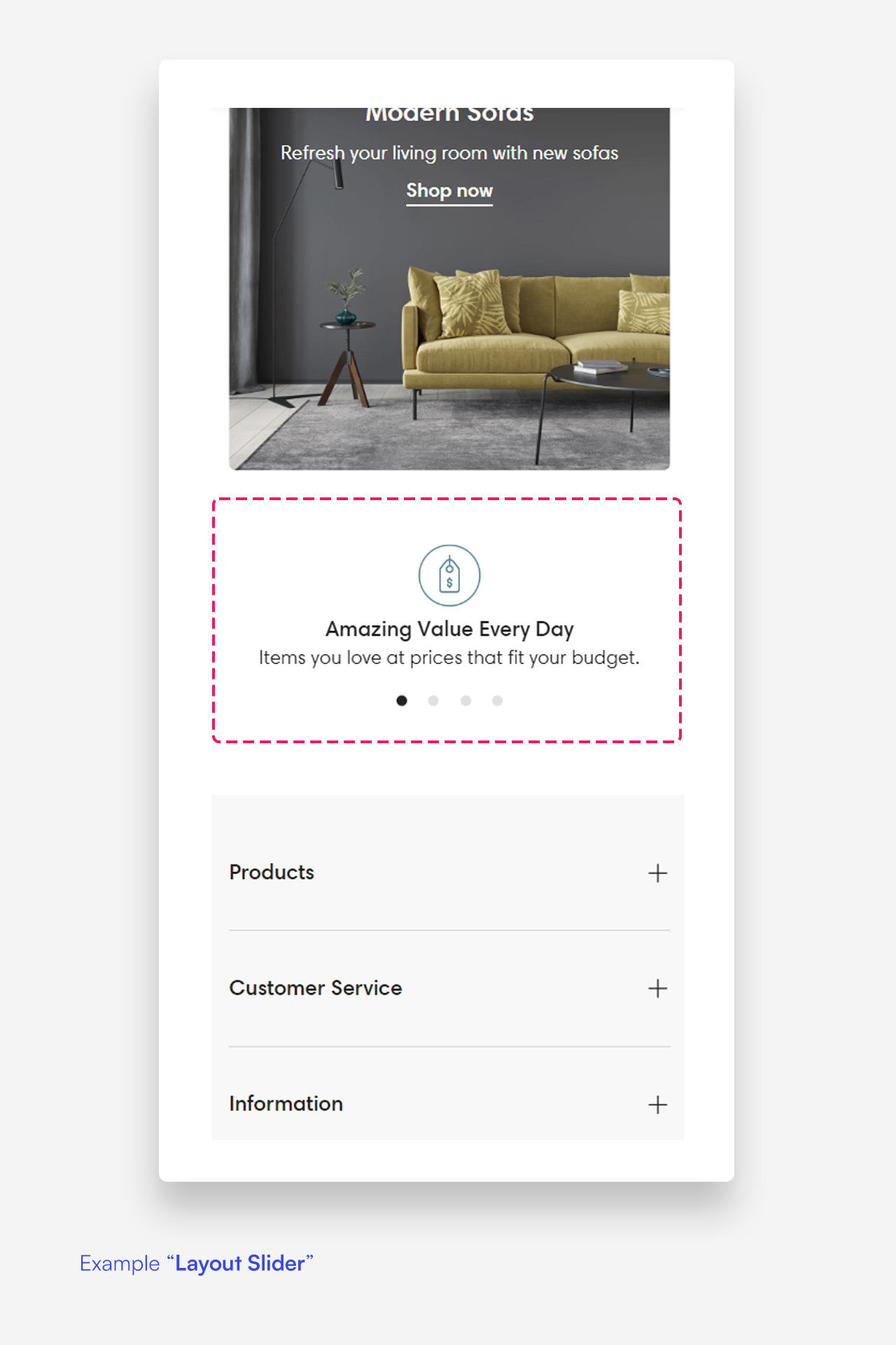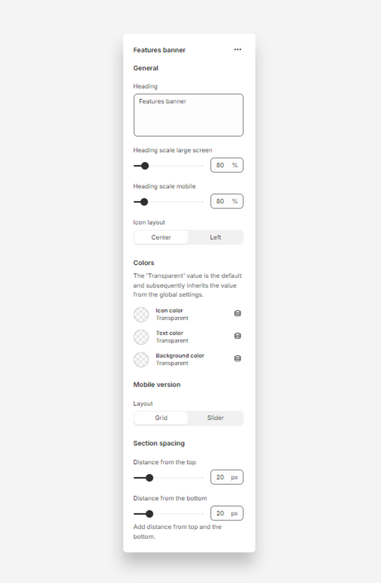 - Layout: Select the layout for the mobile version of the features banner (options: Grid, Slider).