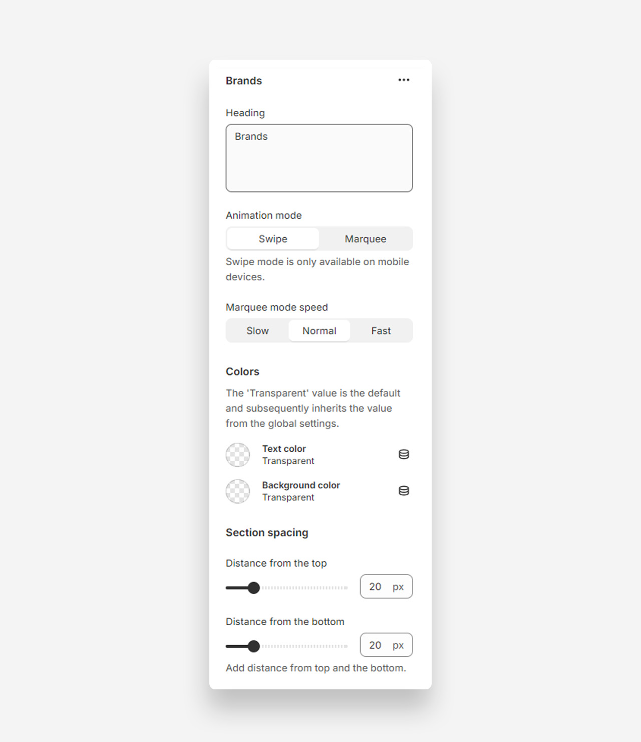 - Heading: Set the title for the Brands section.