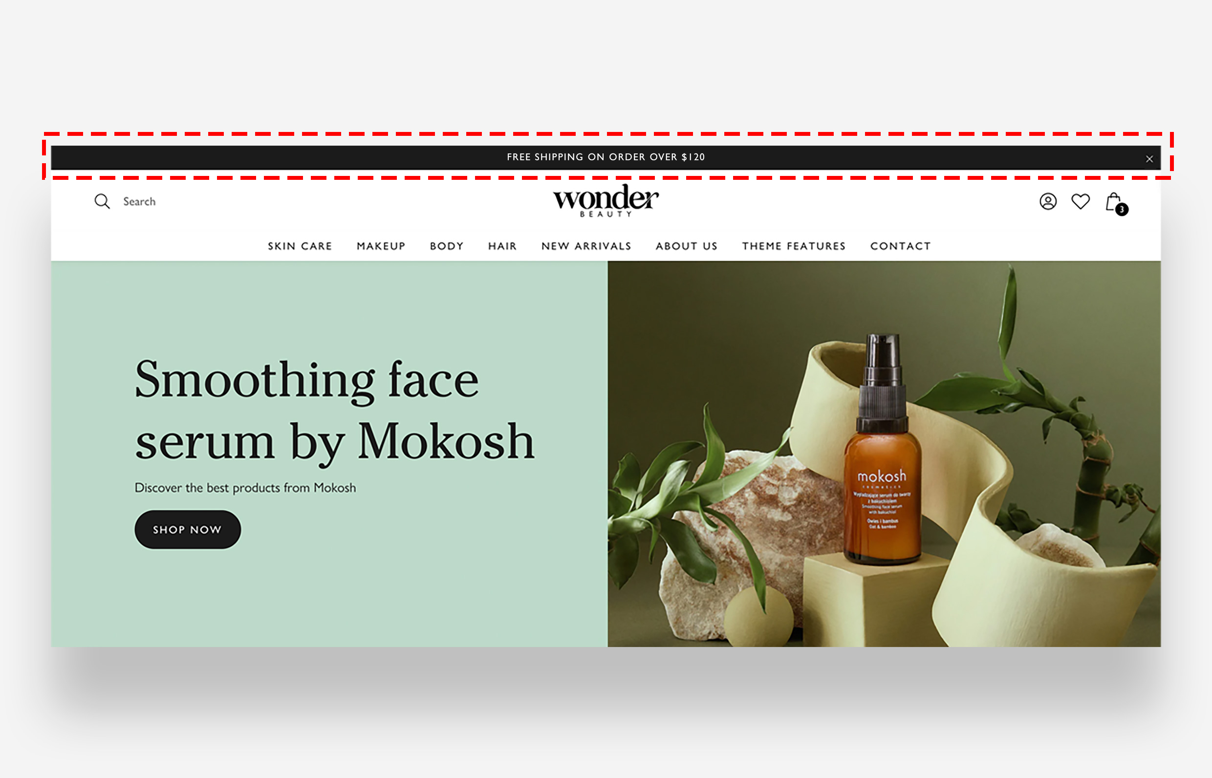 The announcement bar is an optional section that, when enabled, is permanently located at the top of every page of your store's website. You can add there interesting information such as: promotions, announcements, sales and news.